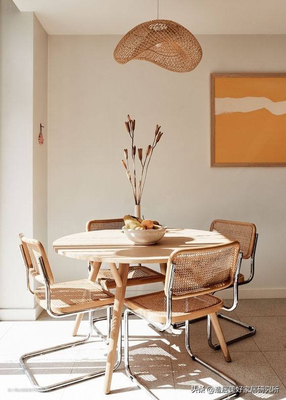 由奶油色构成的餐厅,搭配藤编装饰,透着一股日式侘寂之美。那般淡薄,那般幽静,为日常的用餐时光注入全新的体验。