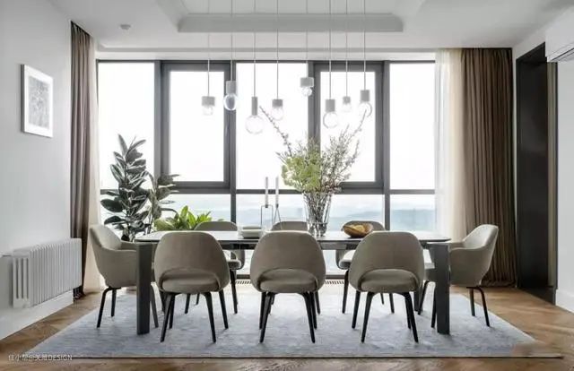 在一些中小型的户型当中,餐客相连的布局形式是很常见的,既能够有效的节省使用面积,又能够对客厅起到拉伸效果,此时客厅加餐厅的面积保持在30~40平米是比较适宜的。在面积比较大的大户型中,一般会设置一个独立餐厅,这种情况下要根据空间具体面积及常住人口来进行判断,一般保持在16平方左右,会有一个更浓郁的就餐氛围。