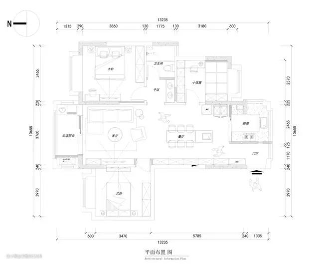 平面布局绝对不止是简单的进行家具摆放,更是对用户需求加以了解后,结合功能分区,进所行的一个整体布局,我们在做平面布局时,至少要考虑以下这五点:空间、采光、通风、动线、功能。