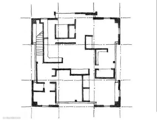 【九宫格】:前提考虑好户型的一系列限制后,需对其原始结构划线,做标记分析,可纵向、横向、斜向划线,产生格子相连的形态,然后根据自己的方案构思与主题故事,展开功能任务表,再将各自功能性质及特点围绕方案构思套入。