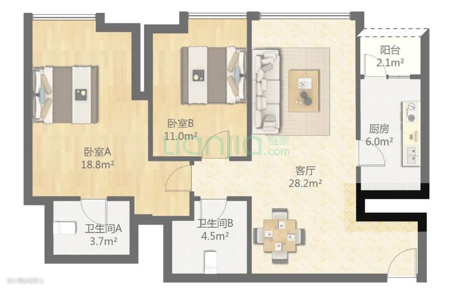 单看户型图,你可能会想:把厨房和客厅打通,不就有采光了?