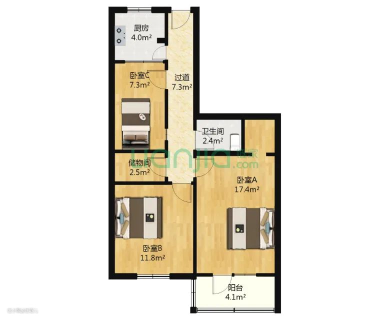 比如这个户型,你觉得能怎么设计南卧室?