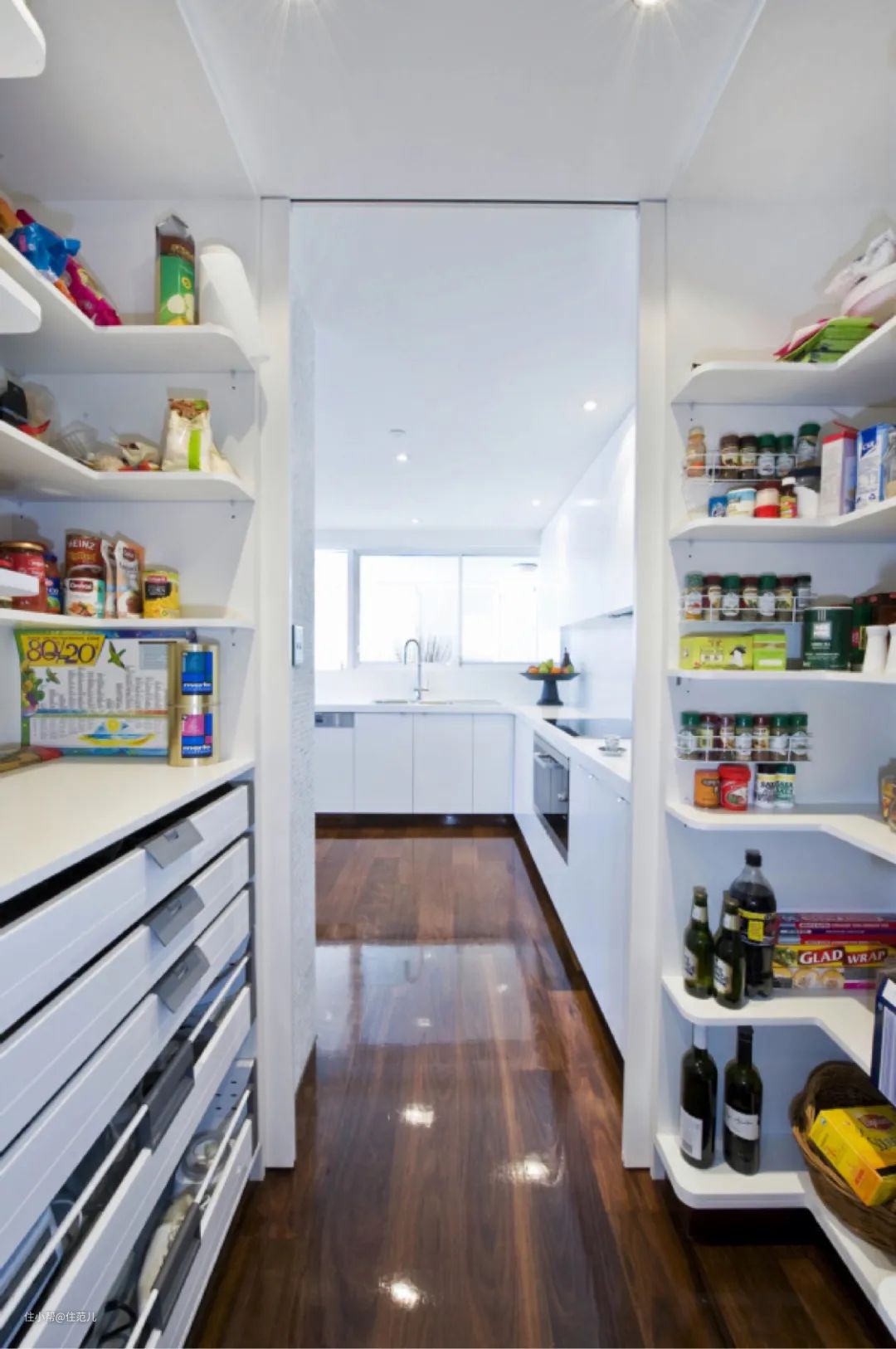 因此,封闭式厨房通铺木地板,推荐配合用吊轨推拉门。