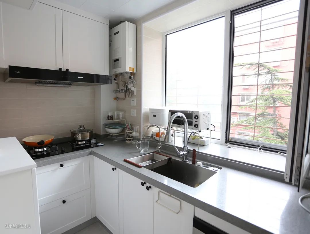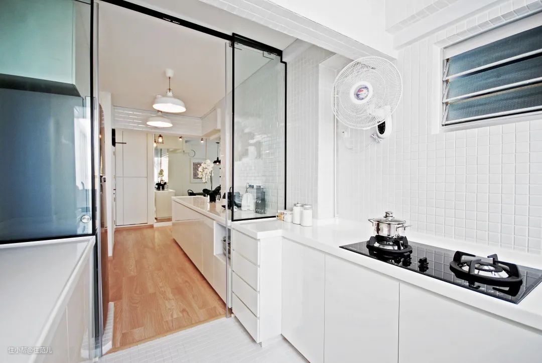 如果你家墙体能改动,我是非常推荐把厨房拓宽一些的,从邻近的空间“偷”一点面积。