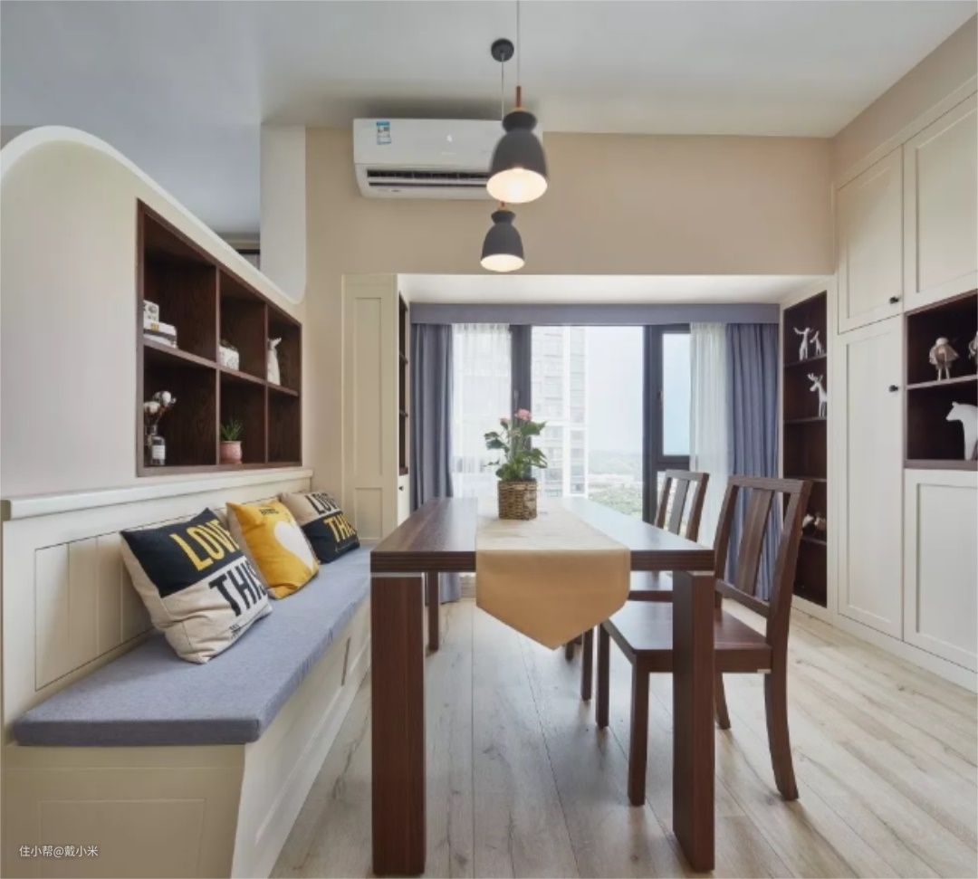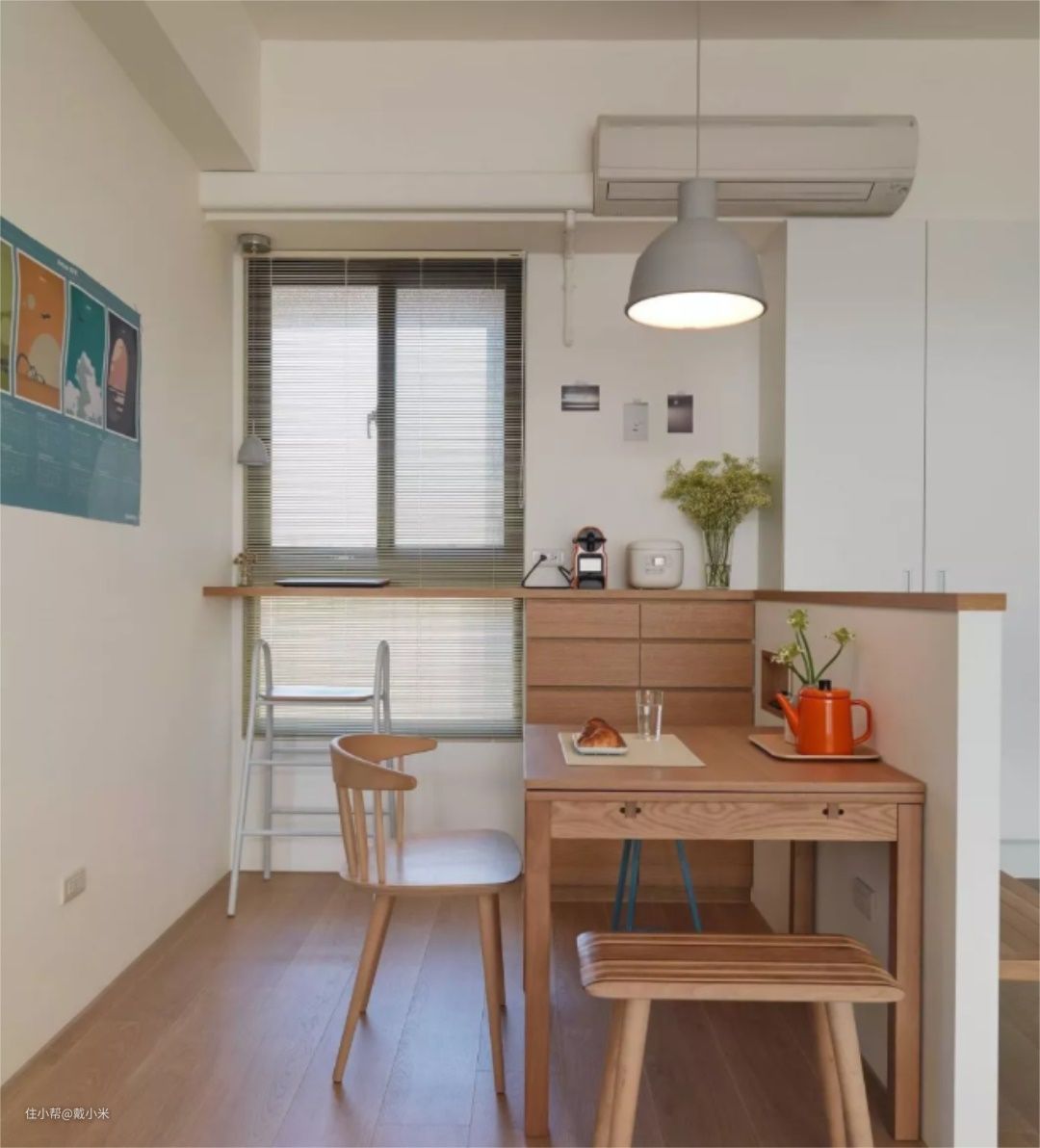 1,如果家里用餐人口少,或者很少下厨的话,餐厅可以尽量缩小,甚至用吧台代替都没事,把空间让给其他功能空间。