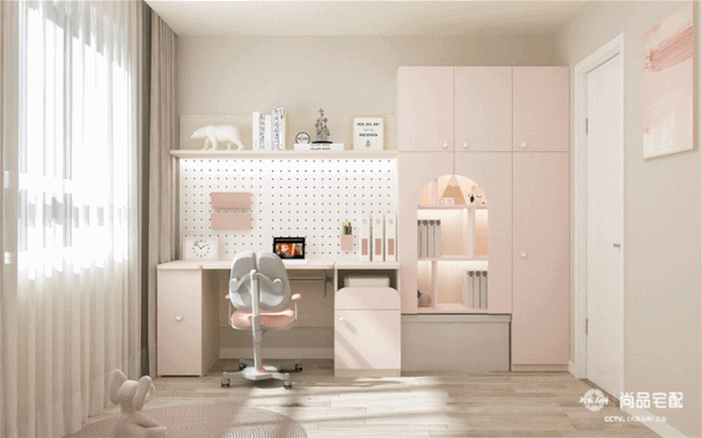 △ 大人的卧室往往需要超大衣柜,但小孩的衣物相对较少,衣柜不需要很大,可以将多余的衣柜空间改成学习区,将书桌完美融入衣柜之中,提高空间利用率。