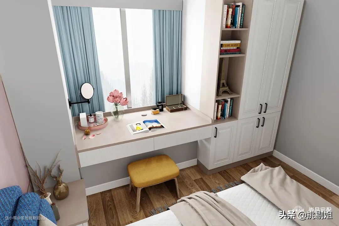 △ 定制书桌与飘窗衔接,延伸书桌台面。也可以直接利用飘窗打造一面柜子,然后在飘窗上方设计一张书桌,采光非常好,储物功能也更加强大。