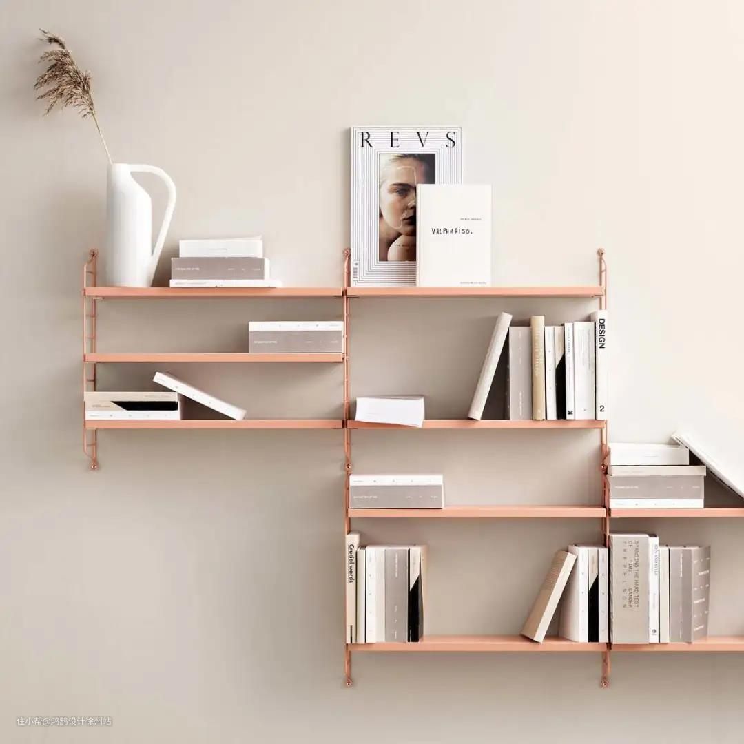 小一点的空间可以用搁板来做报刊架和书籍架,收纳常看的书籍,像下图这种收纳架,是瑞典系统收纳家具品牌String Furniture的代表产品。