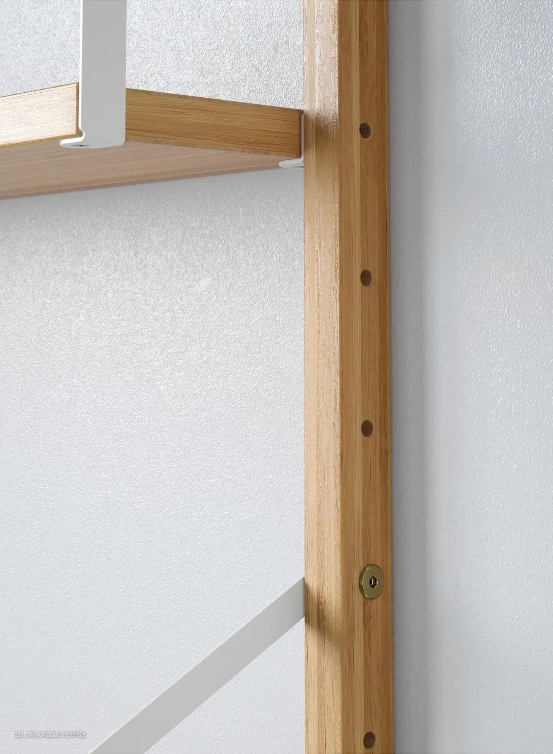 宜家的斯瓦纳系列颜值和实用性就很高,与挂墙柜系统类似,竹制的材料,安装在墙面耐用耐看。