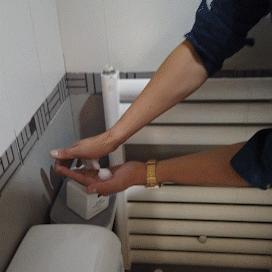 就算大力按压洗手液,纸巾盒依然牢牢的粘在墙上,完全OK。
