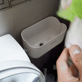 之前在厨房介绍的磁铁挂钩,吸附在洗衣机侧面悬挂洗衣袋也很实用,比放在地板上更卫生,并且分类衣物很方便。