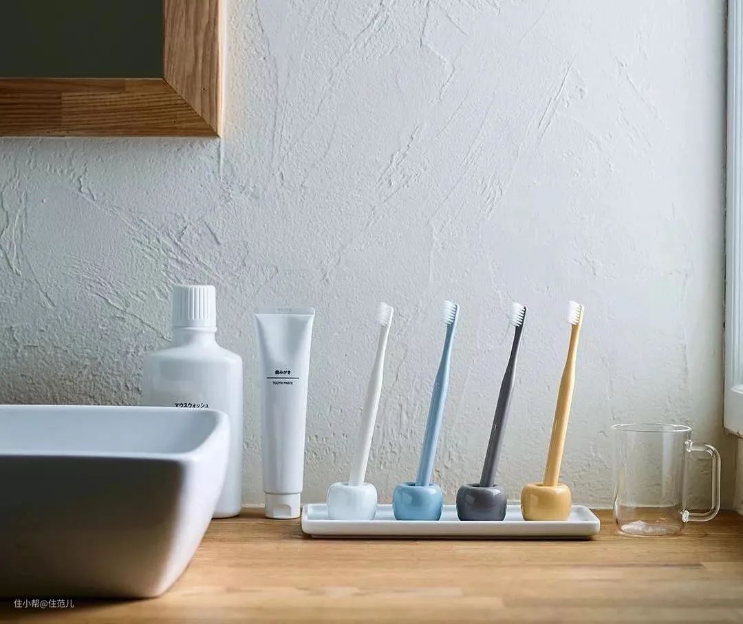 MUJI这款牙刷架不是传统的壁挂形式,而是选用了易清洁陶瓷材质做牙刷底座。