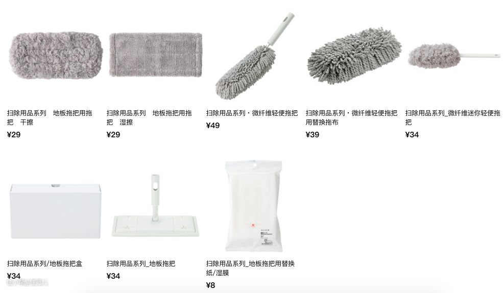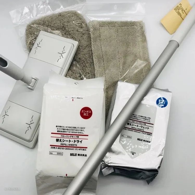MUJI拖把组合配有干湿拖布、干湿纸巾、伸缩杆、拖把收纳盒等,一套下来将近300元,是日本主妇心头好。