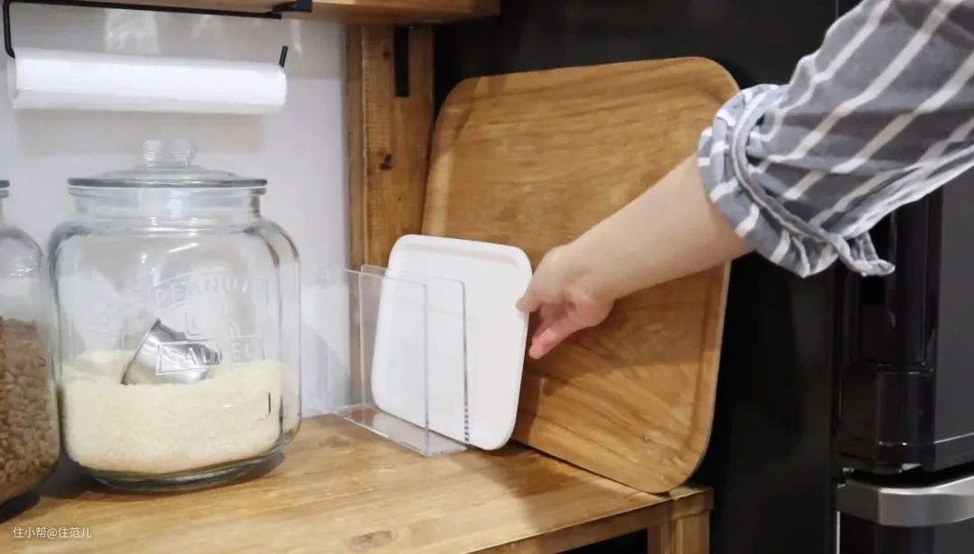 放在橱柜或抽屉里做分隔架,收纳餐盘小碟子甚至锅具特别好用,选择存在感弱化的透明书立,丝毫不妨碍柜内统一的整洁性。