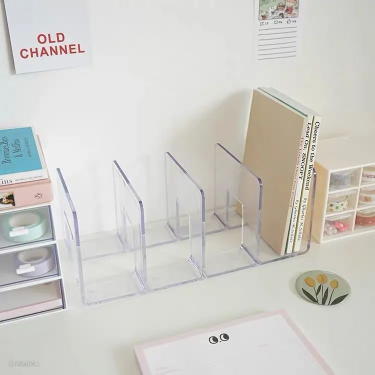 不到20元就能买到三联或四联的透明书立,选择单独书立拼在一起收纳,还能按照物品随时调节宽度灵活多变。