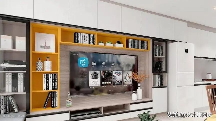 客厅最适合做收纳的地方就是电视柜了,而且现在很流行用电视柜来代替电视背景墙。尤其是小户型家庭,更适合做收纳型电视柜。