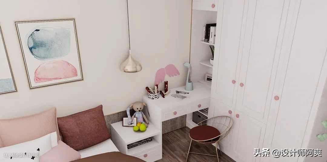 小户型通常都有一个面积较小的房间,如果按照正常的布置,摆放成品床、书桌与衣柜的话,可能家具无法放得下,就算放得下也会显得很拥挤。