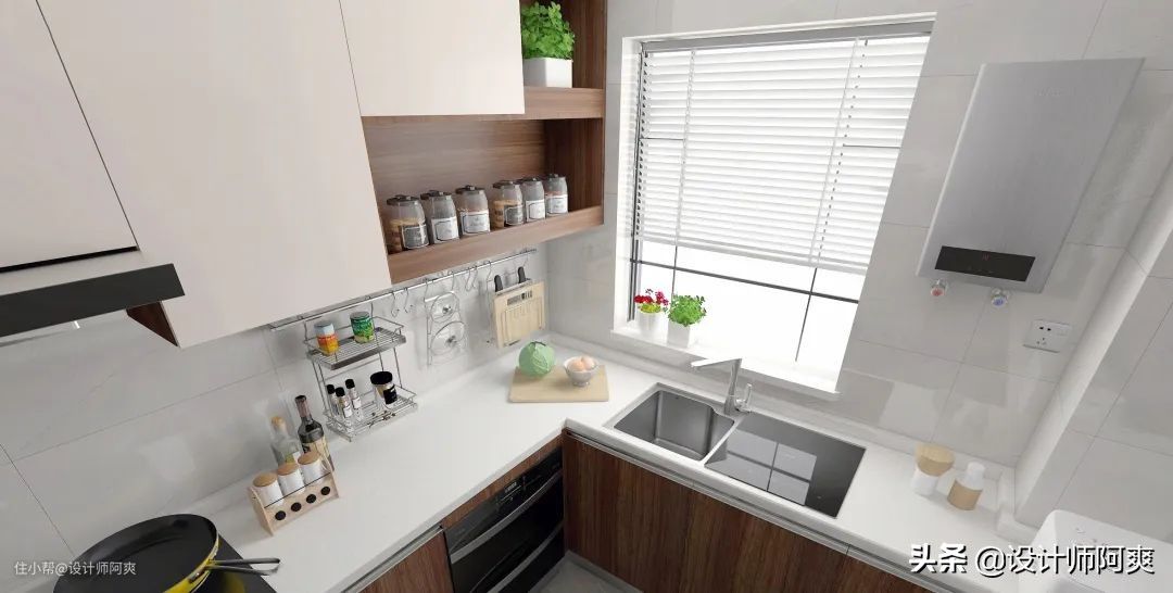 厨房收纳方案:橱柜+台面收纳+墙面收纳↓↓