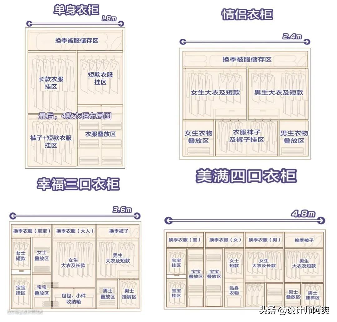 根据家庭人员的不同,或者说所处的人生阶段不同,衣柜布局也有所变化。下面4款衣柜布局图,有需要的赶紧收藏啦!