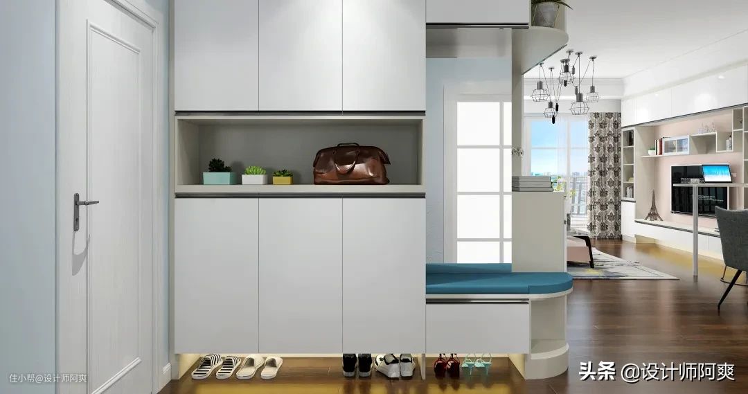 2、中等玄关:收纳柜+台面+底部换鞋区