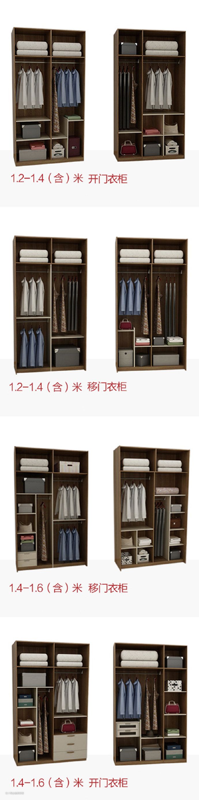 因为每个人对衣柜大小的需求不同,所以各种衣柜布局都是参考,实际选择需要自己结合实际在做相应变动。
