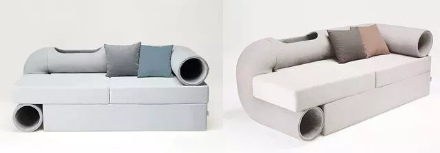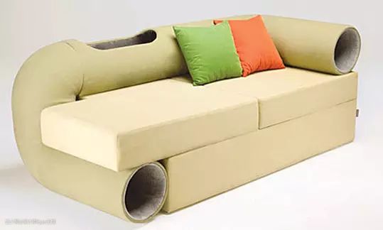 韩国设计师Seungji Mun把对猫的爱移植在了沙发上,这款cat tunnel sofa外观看起来仿佛一个微缩的城市一角,管道和楼宇紧密相依,正如宠物和主人的关系。猫咪和铲屎官在这款沙发上可以愉快地捉迷藏,增加更多生活趣味。