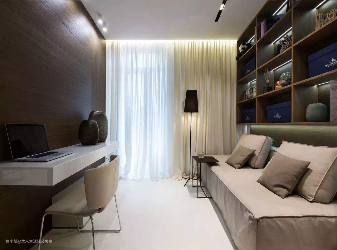 那么有一些朋友可能会说家里没有房间作为书房,但是又特别想要怎么办?这种情况也是很多的,解决办法有这些: