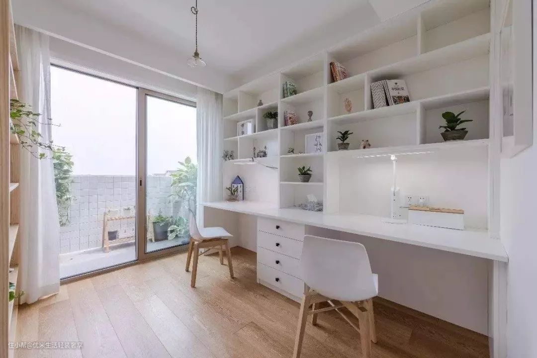 2. 阳台做书房。这种方式比较常见,能够很好地利用有限的空间。