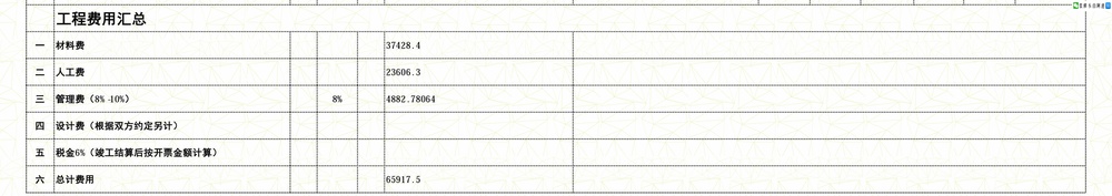 说明一下:后面单价不用参考。表上的黑白条没有其他意义,我找到的预算表就是这样的。