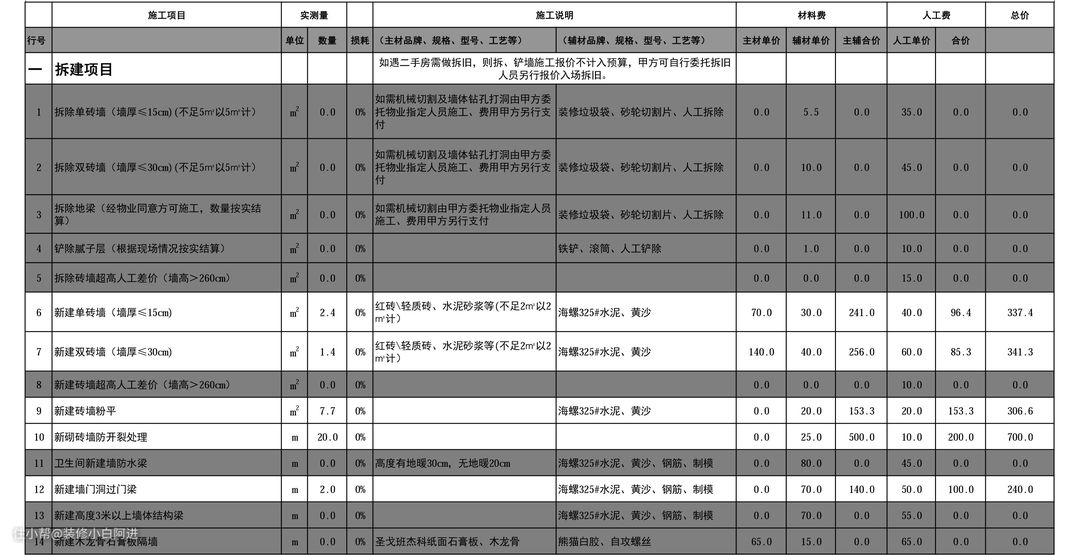 这是一份很详细的拆旧报价(包含新砌墙体),很规范。