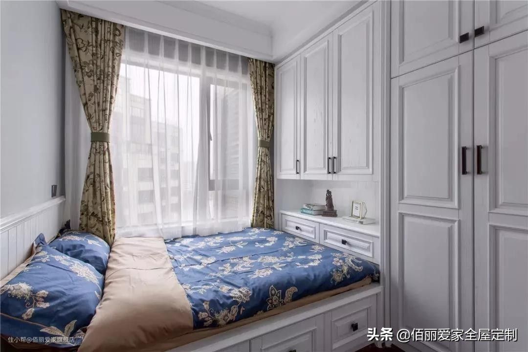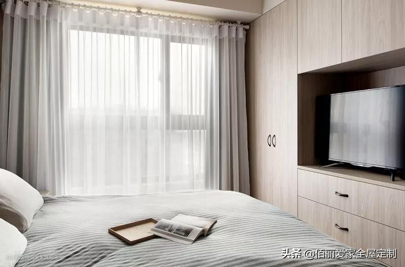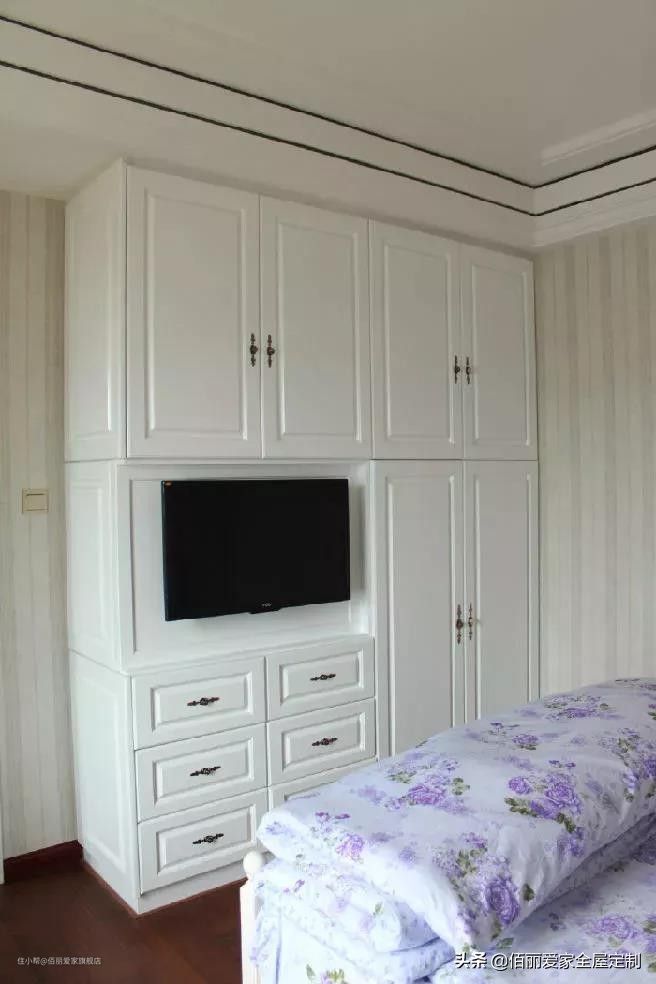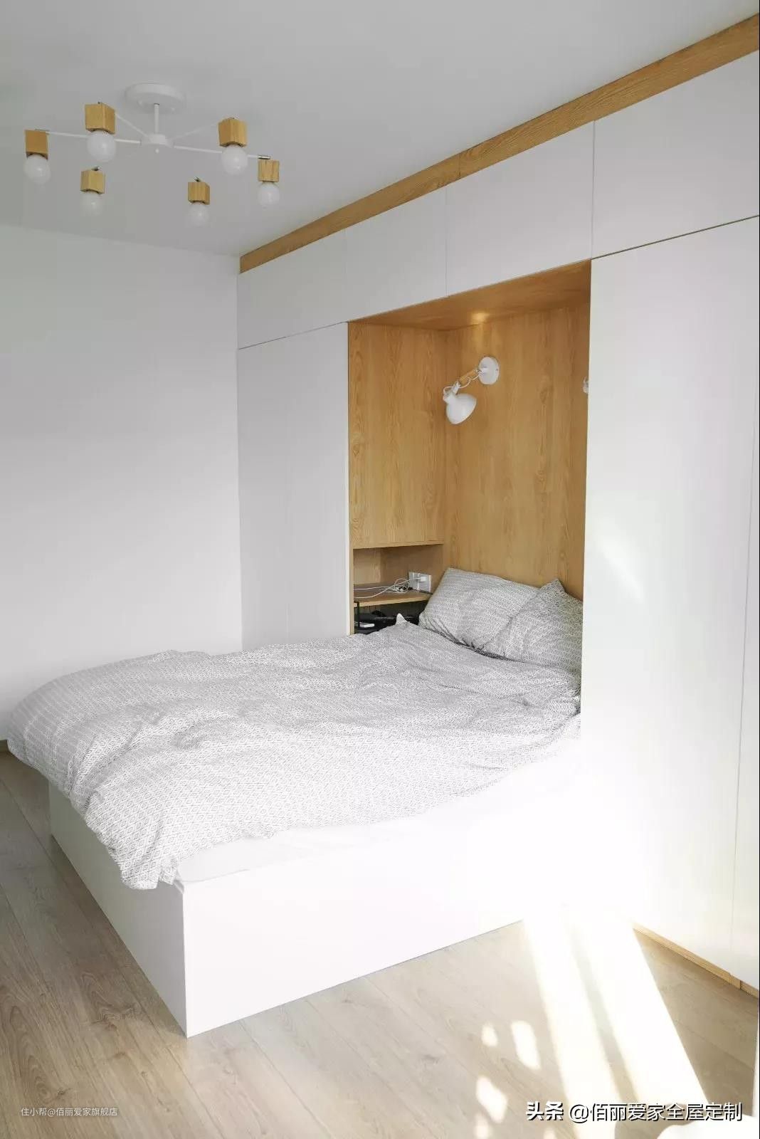 一些比较小的卧室,衣柜没位置摆放的,一般都会在床头或床尾把衣柜组合进去设计。