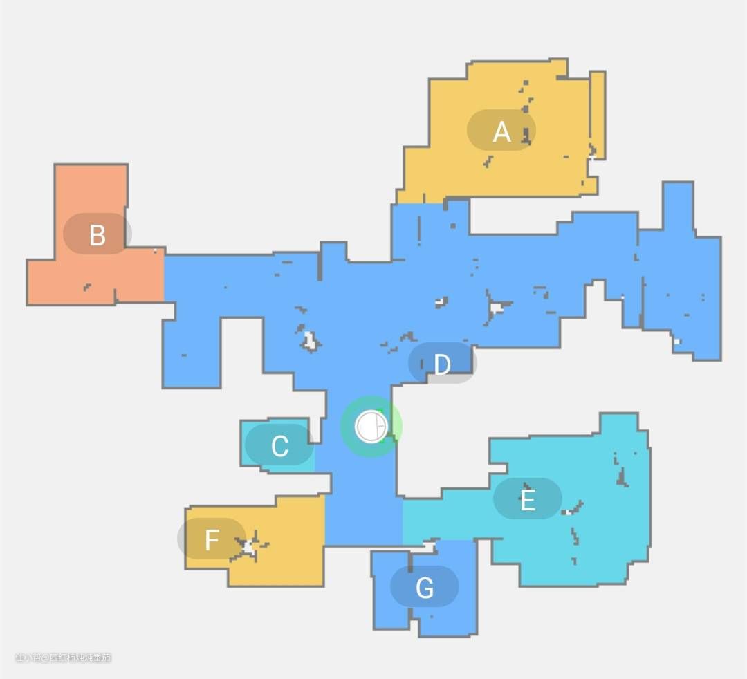 和采用激光雷达传感器的机器不同,使用视觉识别系统的 F9在构建地图的时候是“走到哪,画到哪”,并且规划出来的户型异常规整,边角处丝毫没有毛糙 ▲