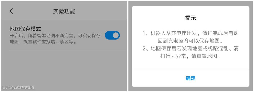 为了让机器在极端条件比如不开灯的夜晚工作(楼主不建议,晚上工作会影响楼下休息),APP中加入了“地图保存模式”。这样一来,用户只需要在前期保存好一张地图,后期就可以直接选择已有地图进行清扫 ▲
