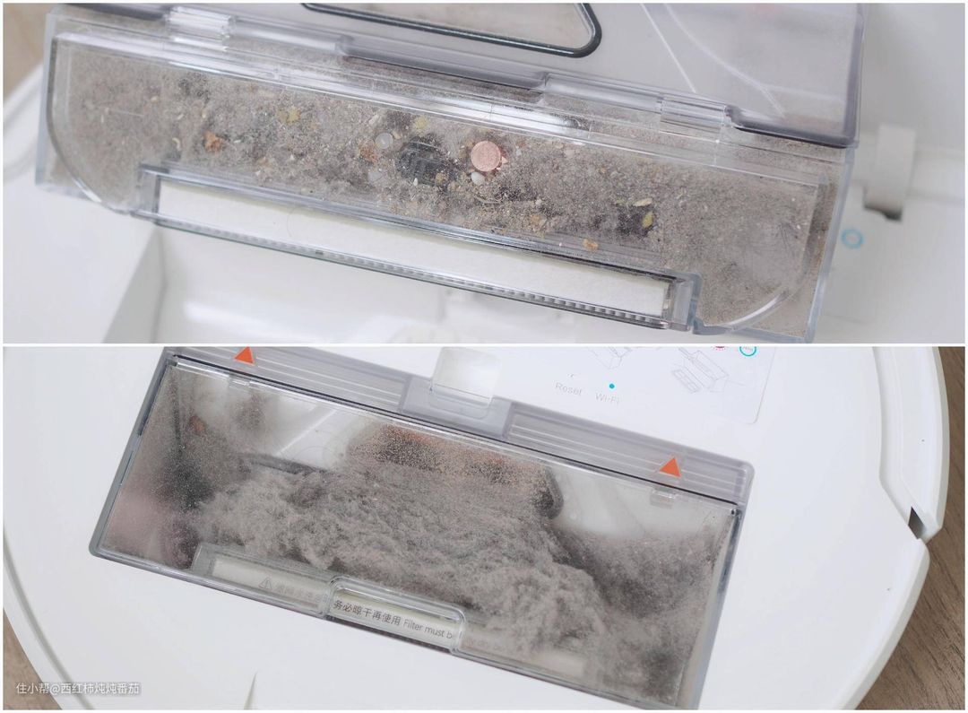 这也是这款追觅扫地机的尘盒不同于市面上其他产品的地方:这多出的一层金属网,可以有效拦截小颗粒灰尘,使 HEPE滤芯得到有效保护,从而大大延长其使用寿命。至于实际使用效果,楼主还会在下文展示。