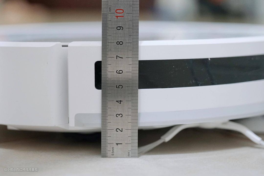 因为采用 vSLAM+光流导航方案,所以机器顶部没有了凸起的激光雷达探头,在家具尤其是茶几、床沿等位置的通过性大大增加。机身厚度实测约 8cm ▲