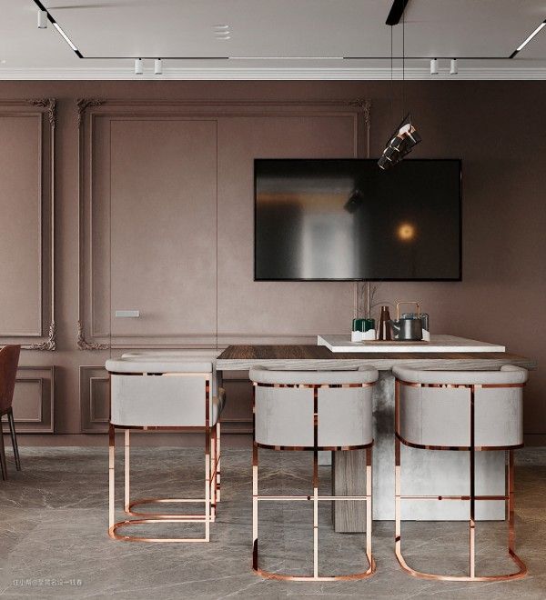以“色”诱人的搭配打造出精美的空间,随意舒适的开放式厨房时刻为就餐做准备,作为家的心脏的它彰显着居家生活的舒适感,在此处大胆演绎出扣人心弦的居家范,而气质内敛的餐具则将优雅高贵的内涵极致表达,油然而生的深沉美与时尚令人瞬间爱上这份情调。