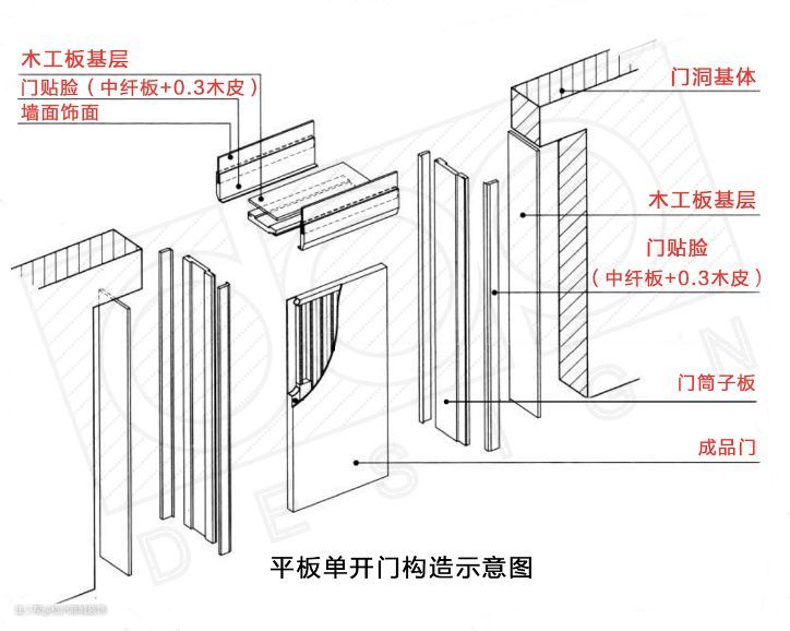 2、 门套大解析:分别从门套的构成以及3种不同基层、3种不同材质的角度解析室内平开门套的做法。