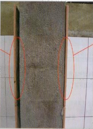a. 玻化砖粘结面未清洗,残留明显的脱模粉(蜡),严重影响粘结效果。