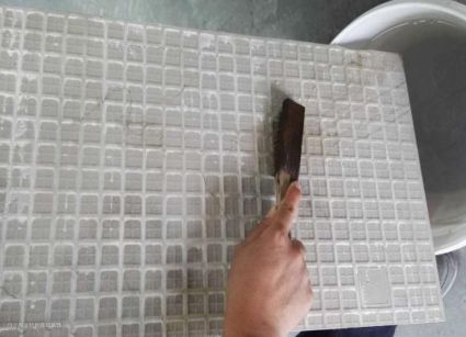 使玻化砖粘结剂均匀分布在玻璃下方↑