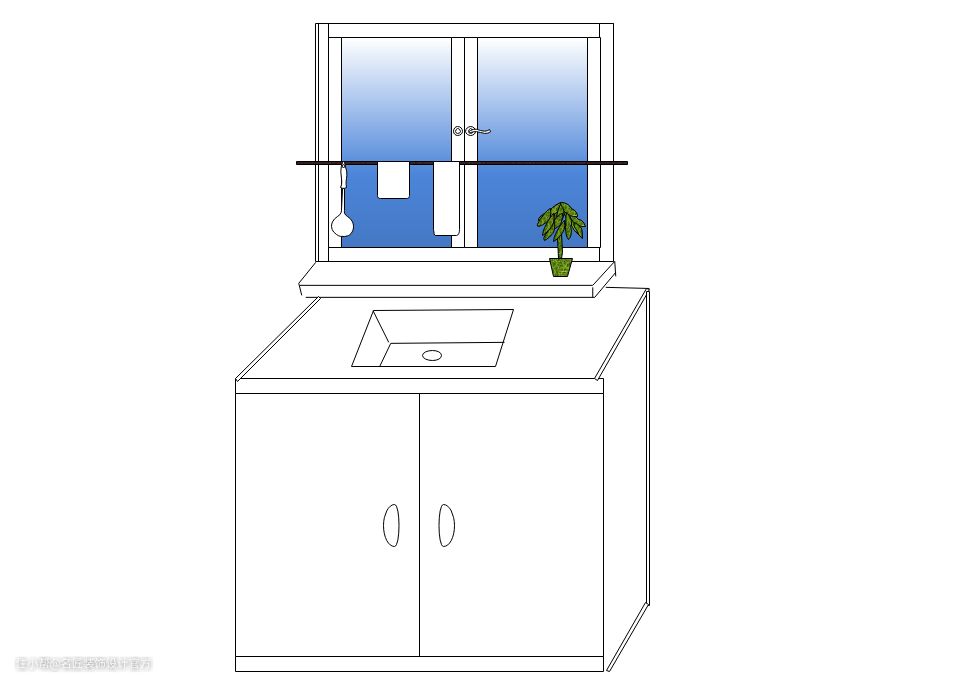 除此之外,厨房的窗户一般会和洗菜槽在一个区域,我们可以在窗户区域安置挂杆,用于洗涤用品的收纳,并且利用水槽旁边的“银区”摆放沥水架,使得厨房功能清晰,摆放更加整齐。
