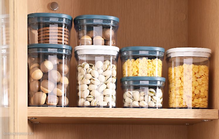 同时选择透明的可以让我们很直观的看到每一个储物盒内存放着那一类物品;在形状选择上,方形要比圆形得好,可以避免更多储物盒空间之间的浪费;最后,一些储物盒会用来储存食材,所以密封性也要着重关注一下。