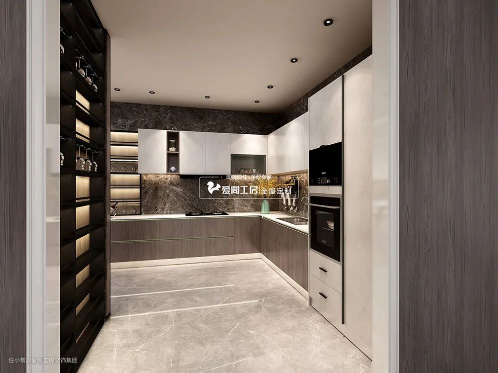 在灰调主导的厨房空间里,更觉内敛沉稳,深邃雅致。铬金属银灰的融入彰显平衡美学,质感、色调精心拿捏,设计蜕变为生活艺术。