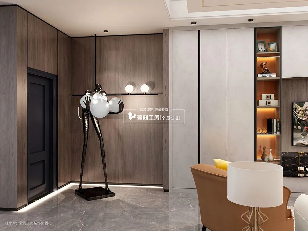 它不动声色、不抢眼,衬托木纹与爱马仕橙的质感,丰富视觉层次,提高居室格调。