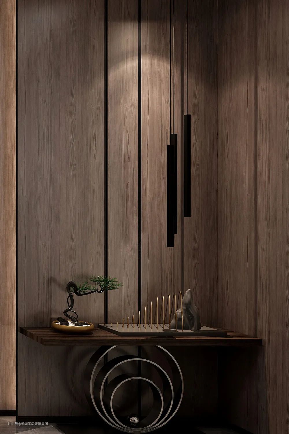 全系列以德国原装进口爱格板·黑灰熔岩河流木纹作为底色,强调装饰线性的纵向木纹,流畅自然,以极简的设计语言,引入沉着稳重的空间感触、真实的木纹肌理、厚实的空间质感沉淀室内氛围。