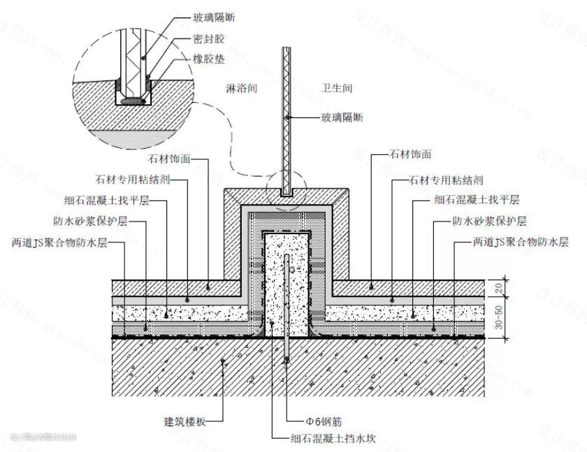 △淋浴房挡水槛地坪节点图
