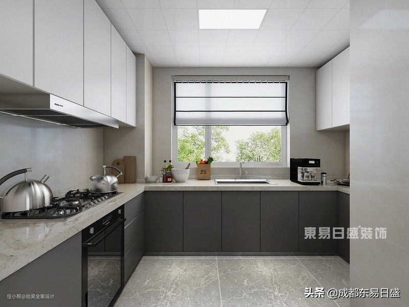 11、厨房采用铁灰加亮白的颜色搭配,现代前卫,干净大方。