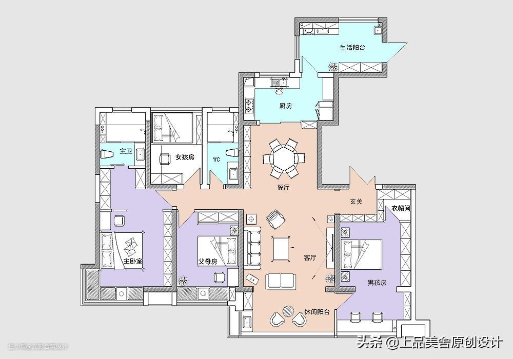 本案是173平米的四房两厅,一家六口三代同堂的家庭结构。业主只有三十出头,一儿一女,父母同住。男主外女主内,女主人全权负责家里的事情,在装修设计这件事上,基本上也是女主人拿主意,男主人十分尊重女主人的意见,基本没有异议。