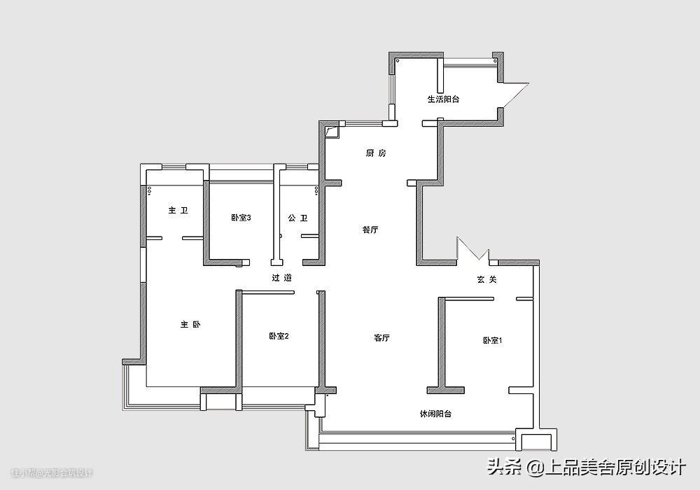 原始户型是一个南北通透的结构,四个房间足够家人使用,房间格局并不需要大的变动。入户玄关和客厅阳台占地面积较大,有点浪费,可以这两处进行改造。