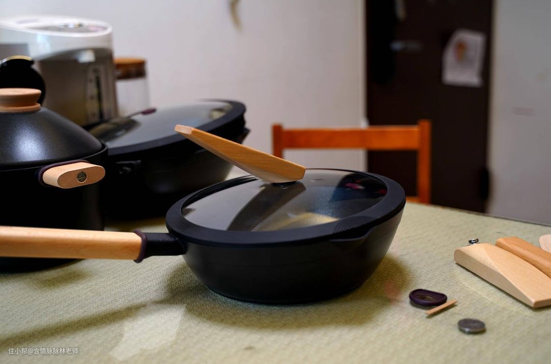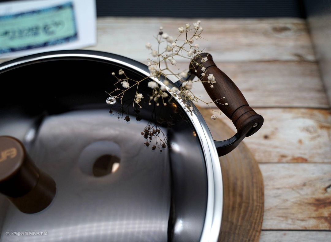 手柄和锅耳的防烫部分也采用了胡桃木的材质,经过使用会让胡桃木包裹岁月的痕迹。看起来更加的漂亮。