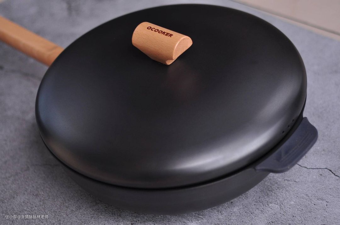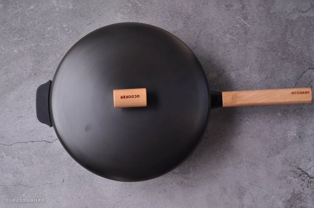 榉木的锅手柄很好的抵御高温,同时这款锅的锅盖采用了胀形锅盖设计,材料和锅体相同,坚硬不生锈,而且锅体质量很轻。老太太除了吐槽热的太快之外,这款铁锅也是平时最喜欢用的一口炒锅。锅体自重2.15KG。